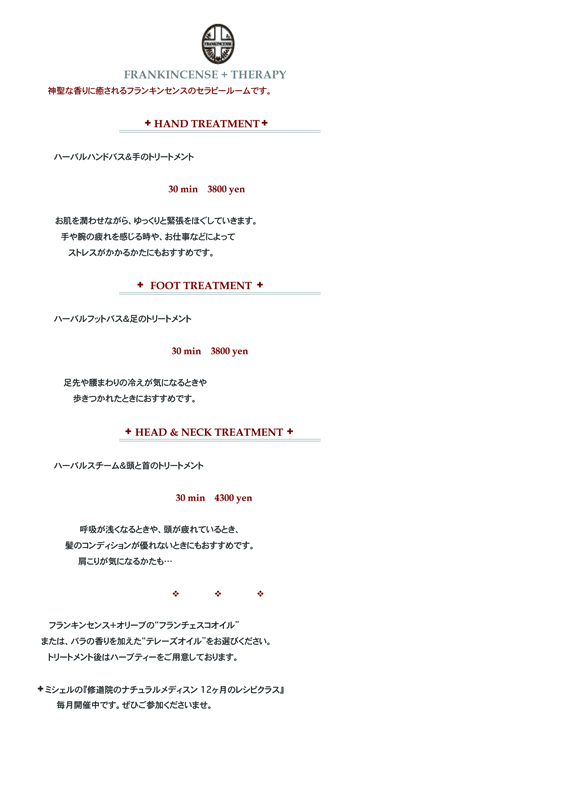2012年フランキンセンス+ショップにて「修 道院のナチュラルメディスン」クラスや、